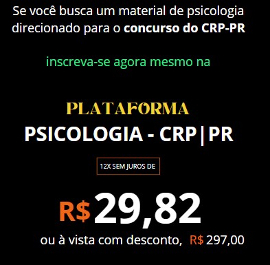 Se você está buscando aprovação no concurso do CRP-PR, eu posso te ajudar com nossa plataforma focada na banca Quadrix! ✨